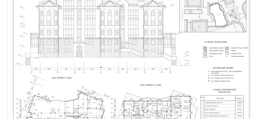 Архитектурная часть дипломного проекта на тему: «Жилое здание с административными помещениями».Чертежи автокад, ПЗ ворд.