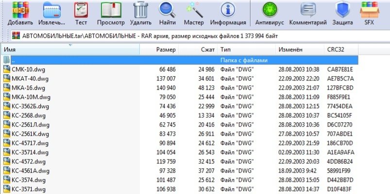 Архив автомобильных кранов в программе Автокад