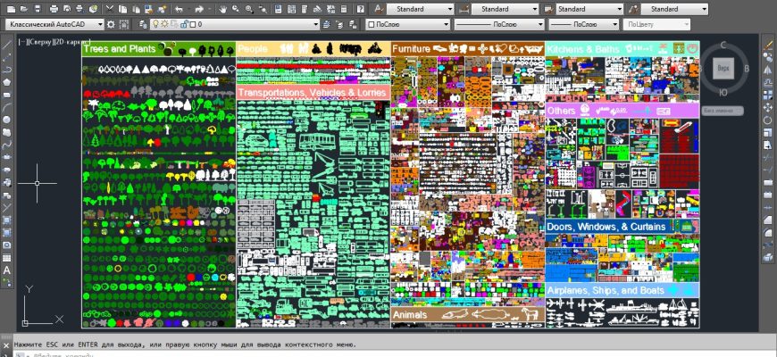 Библиотека в автокаде: деревья, мебель, техника, оборудование
