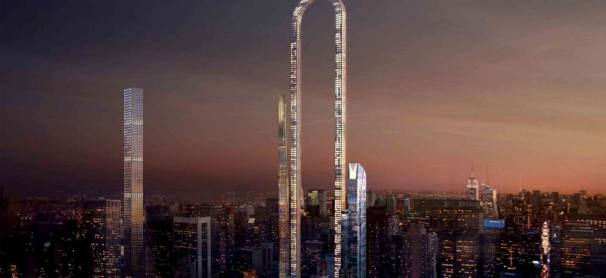 В последнее время в Нью-Йорке реализовано множество проектов небоскребов, в значительной степени изменивших горизонт города. Архитектурные тенденции городских зданий сводятся к строительству высоких, сверкающих, стремящихся к небу высоток, и новые проекты таких абсолютно типичных строений появляются чуть ли не каждую неделю. В 2017 году архитектурная студия Oiio, чьи офисы расположены в Нью-Йорке и Афинах, сделала проектное предложение, которое выгодно отличается от десятка других небоскребов. Они предлагают построить действительно концептуальное здание, в котором предпочтение будет отдаваться не высоте, а длине постройки.