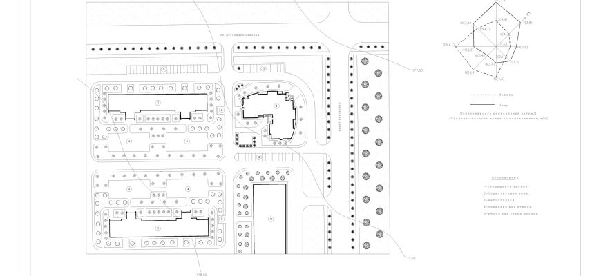 Чертеж генплана в Автокаде на жилое здание, чертеж в комментариях…