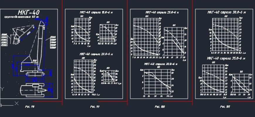 Чертеж и циклограмма гусеничного крана МКГ-40 в программе Автокад