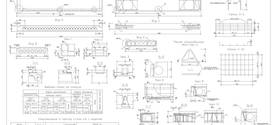 Чертеж многопустотной плиты перекрытия