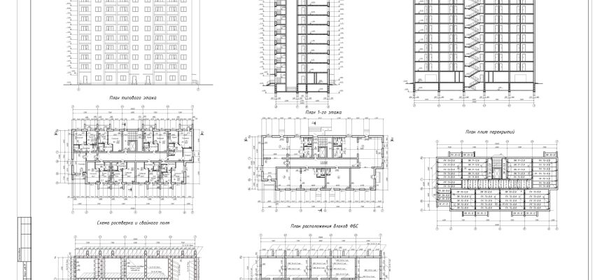 Чертежи 10-ти этажного здания в Автокаде