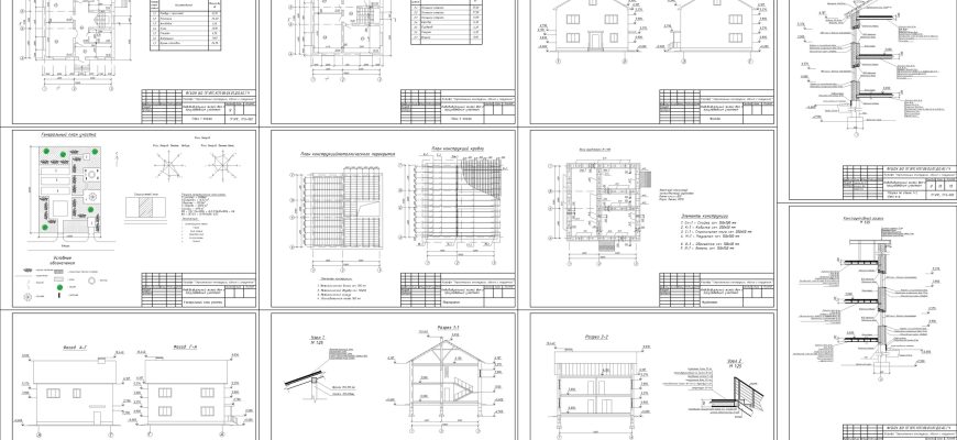 Чертежи 2-х этажного коттеджа в Автокаде