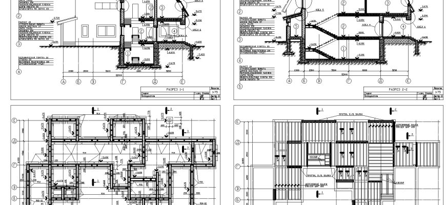 Чертежи 2-х этажного коттеджа в программе Автокад
