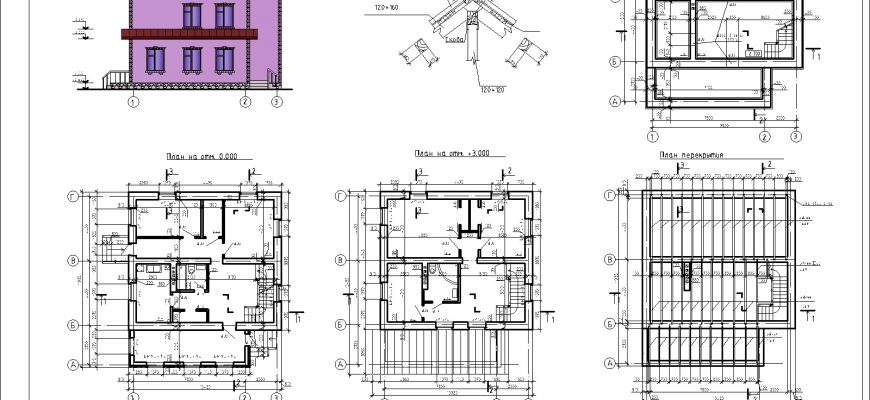 Чертежи 2-х этажного коттеджа в программе Автокад