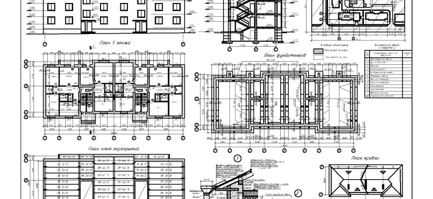 Чертежи 3-х этажного здания в программе Автокад