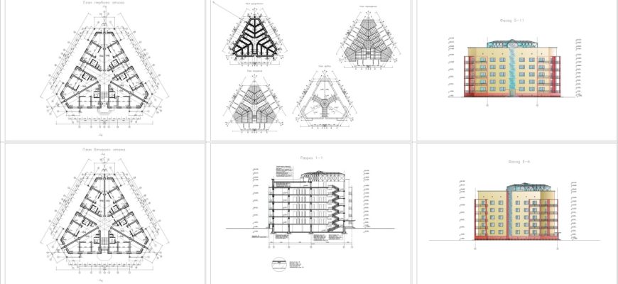 Чертежи 5-ти этажного жилого дома в DWG, файл можно скачать…