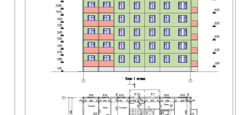 Чертежи 9-ти этажного панельного здания в Автокаде