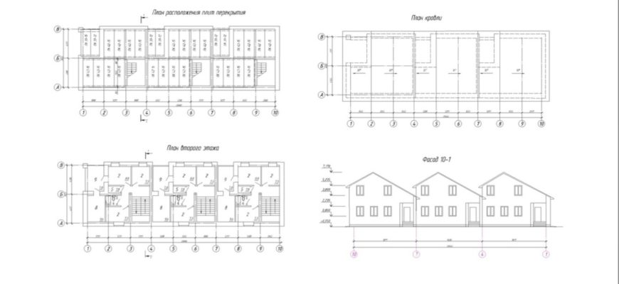 Чертежи блокированного жилого двухэтажного дома в программе Автокад
