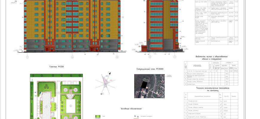 Чертежи диплома «9-ти этажного 2-х секционного жилого дома» в Автокаде….