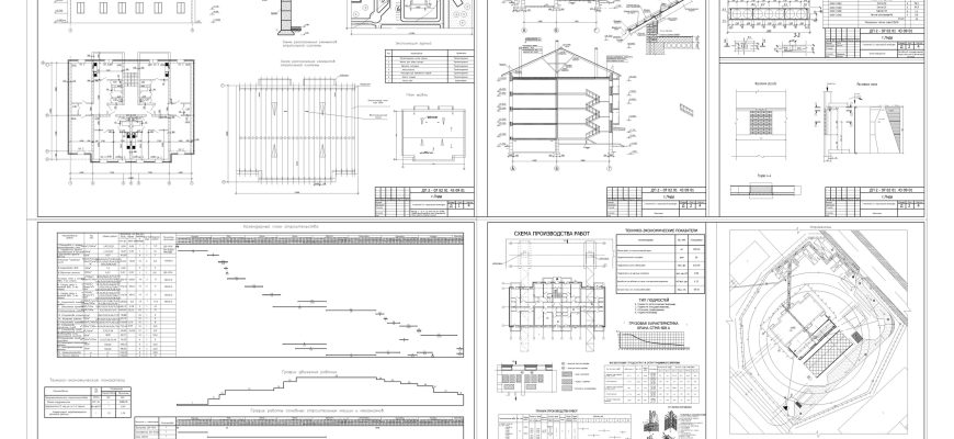 Чертежи дипломного проекта 4-х этажного здания