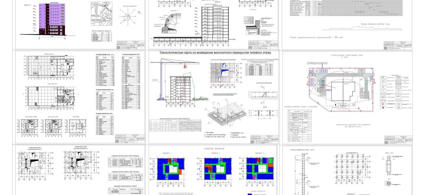 Чертежи дипломного проекта на общественное многоэтажное здание в Автокаде