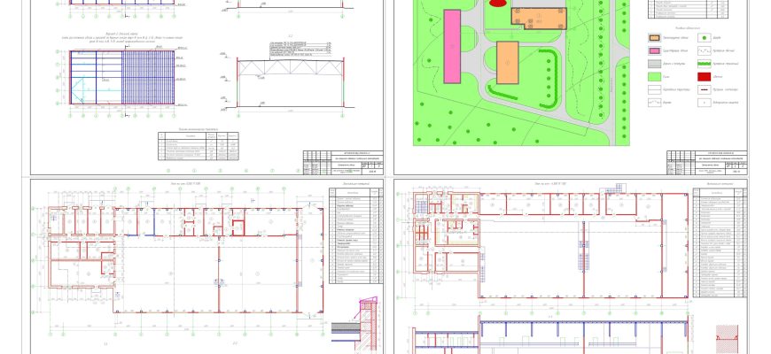 Чертежи дипломного проекта, промышленного здания в автокаде