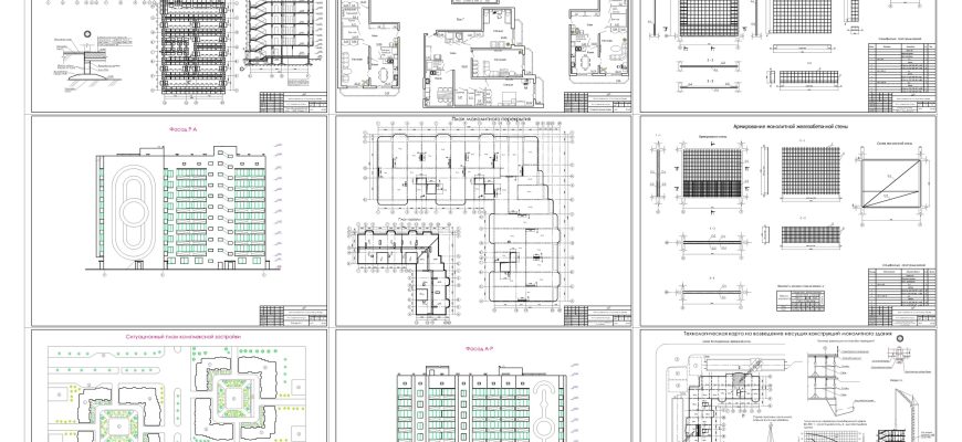 Чертежи дипломного проекта в Автокаде на тему «Многоэтажный жилой комплекс в г. Москве»