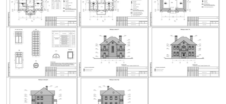 Чертежи двухэтажного коттеджа в программе Автокад Здание размерами в осях…