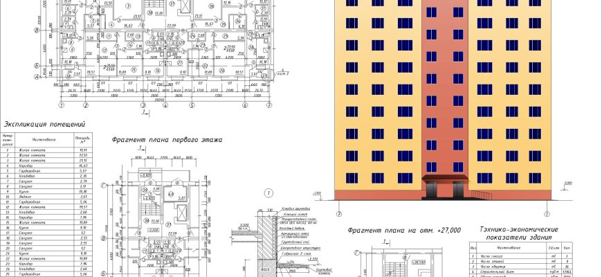 Чертежи кирпичного 9-ти этажного здания в программе Автокад