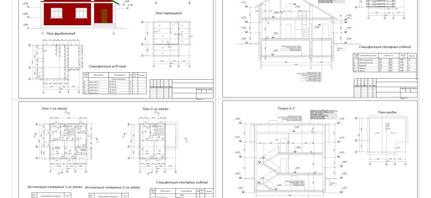 Чертежи коттеджа с мансардой в Автокаде