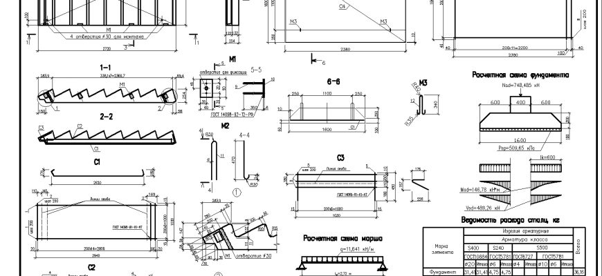 Чертежи лестничного марша в Автокаде