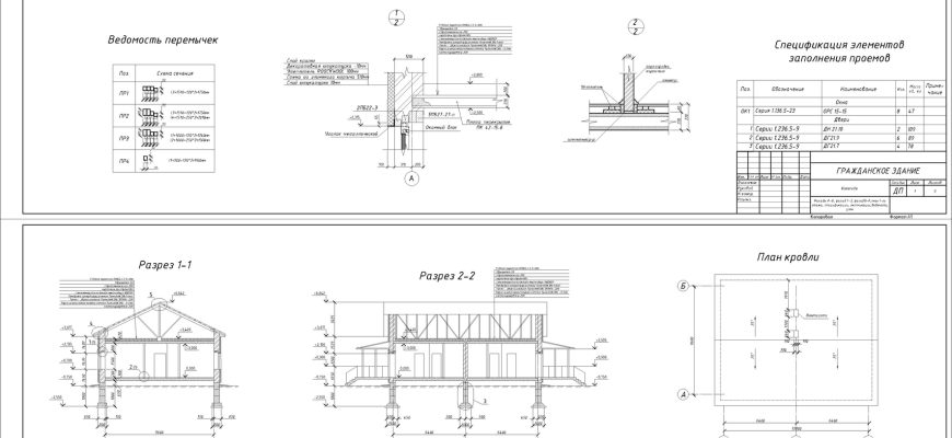 Чертежи на тему «Одноэтажный коттедж». Чертежи 2 листа формата А1 в Автокаде