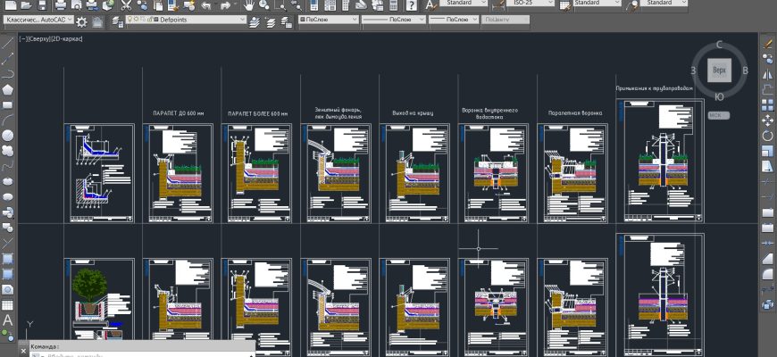 Чертежи по устройству плоских эксплуатируемых кровель в Автокаде