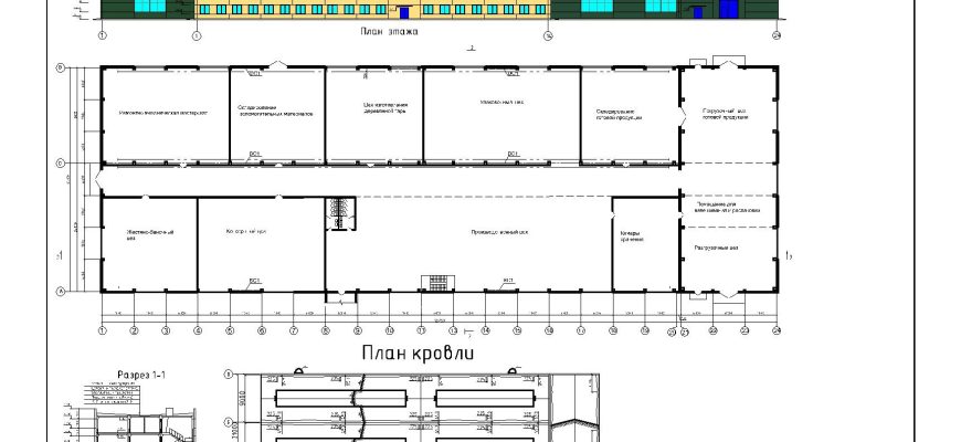 Чертежи промышленного здания + АБК в программе Автокаде