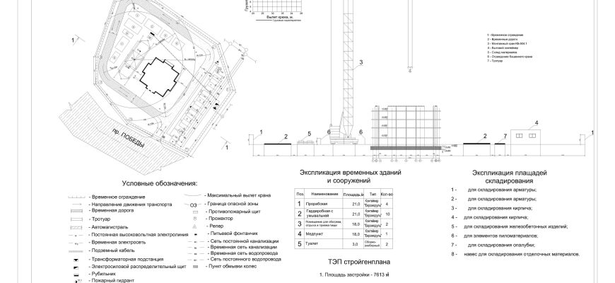 Чертежи строительного генерального плана на многоэтажное здание в автокаде