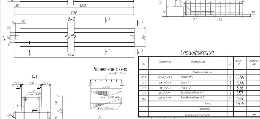 Чертежи строительных конструкций (ригель, колонна и плита перекрытия) выполнены в программе Автокад