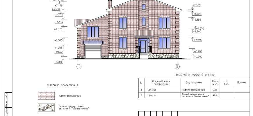 Двухэтажный коттедж с гаражом в Автокаде