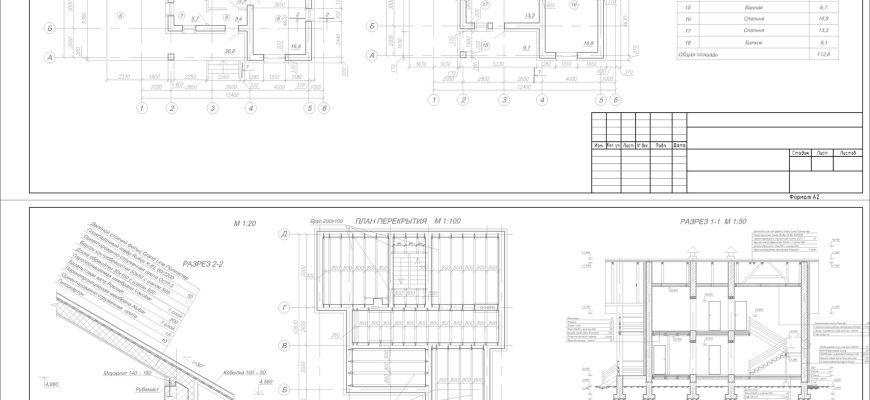 Курсач по архитектуре «Коттедж с мансардой». Чертежи в DWG +…