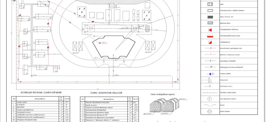 В состав работы входить стройгенплан и календарный план строительства 5-ти этажного жилого дома из кирпича .