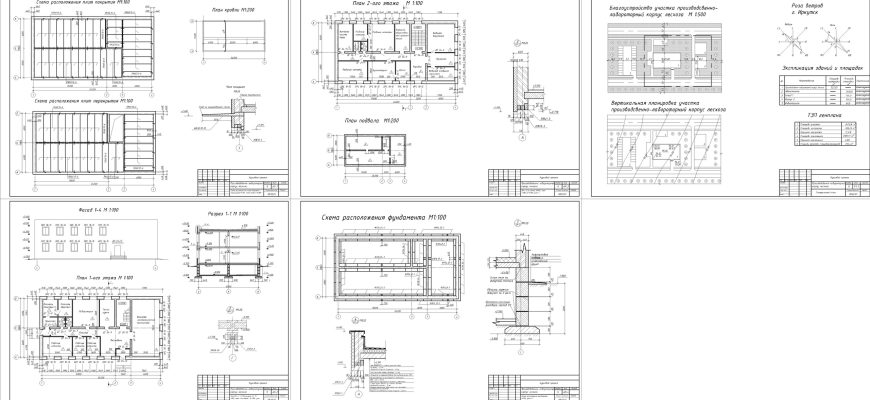 Курсовая работа по архитектуре на тему: «Производственно -лабораторный корпус». Чертежи + ПЗ в Автокаде.