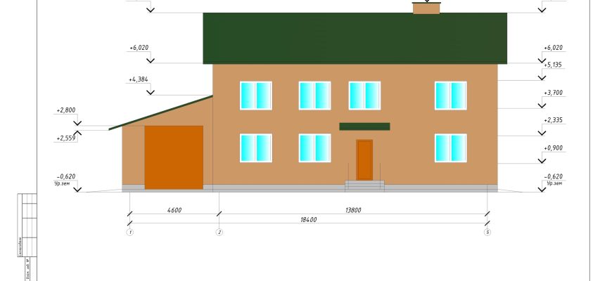 Курсовой проект по архитектуре » 2-х этажный коттедж с гаражом»