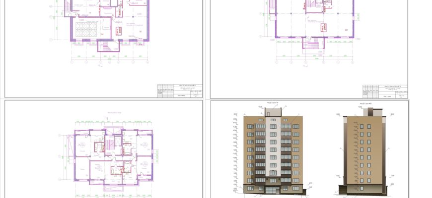 Курсовой проект по архитектуре «Десятиэтажный жилой дом» в программе Автокад…