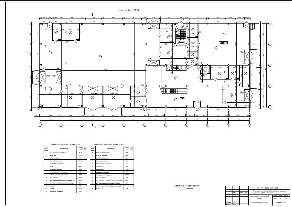 МГСУ ИДО — Проектирование здания автосалона со стальным каркасом в городе Смоленске — Архитектурно-строительный раздел План на отметке 0.000 — чертеж
