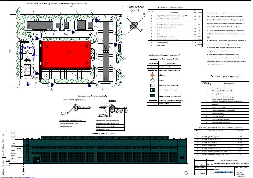 МГСУ Проектирование промышленного здания в Казани — Архитектурно-строительный раздел Генеральный план (М 1:500) — чертеж