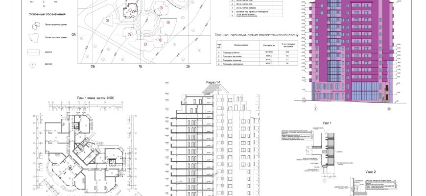 Многоэтажный жилой дом в г. Ленск. Чертежи в программе Автокад и пз в Ворде
