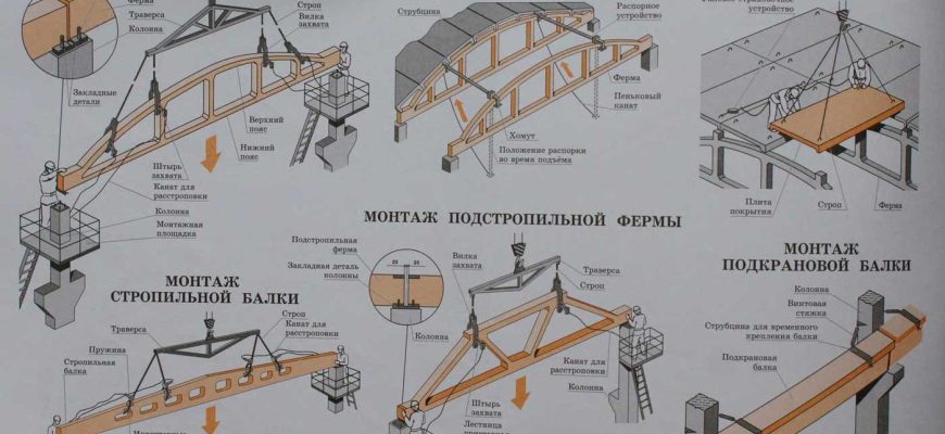 Монтаж железобетонных конструкций покрытия одноэтажных промышленных зданий
