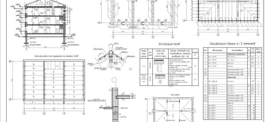 Набор чертежей для курсового проекта в программе Автокад. Трехэтажное здание.