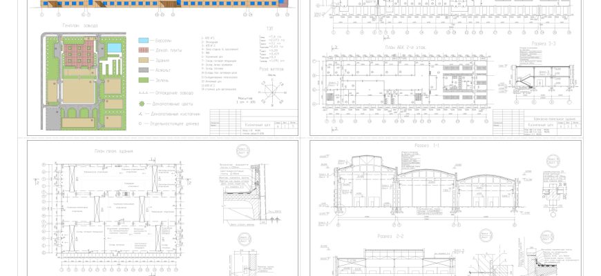 Подборка чертежей промышленных зданий с АБК в Автокаде