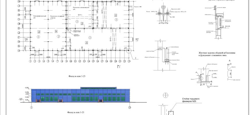 Пример курсового проекта промышленного здания в программе AutoCAD.