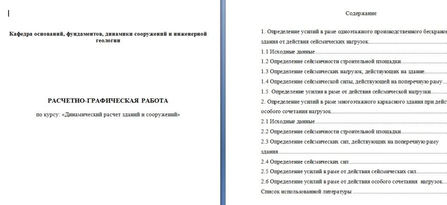 Пример курсовой работы «Динамический расчет здания в Ворде»