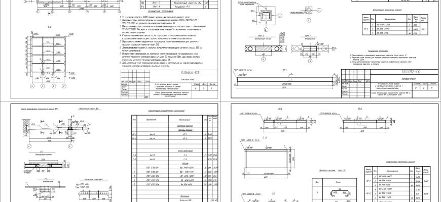 Пример первого курсового проекта по ЖБК графической части в Автокаде, пояснительная записка в Ворде
