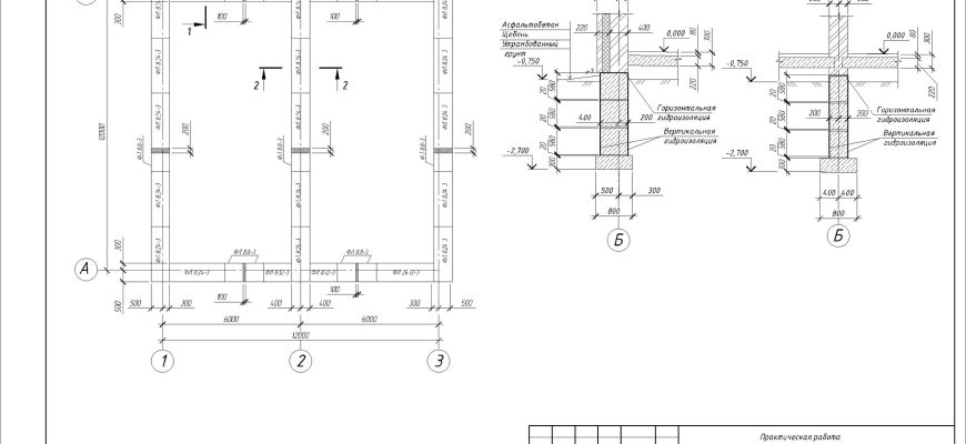 Пример практической по архитектуре, раскладка ленточного фундамента в автокаде