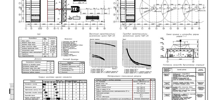 Пример технологической карты на монтаж металлической фермы графическая часть в Автокаде. Забирай себе, чтобы не потерять