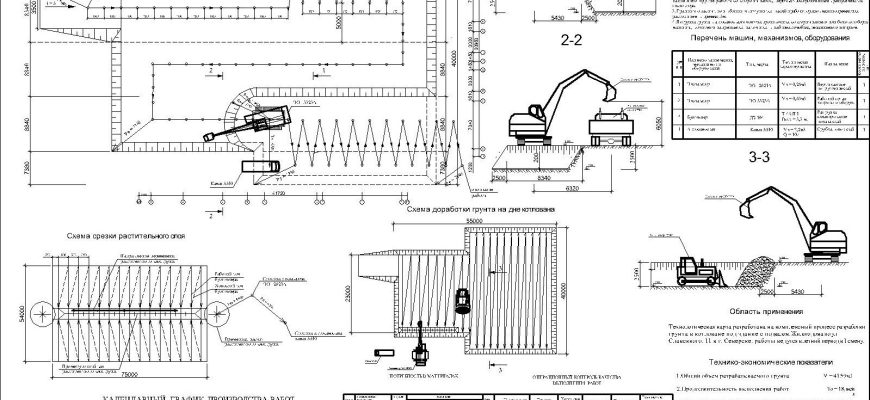Пример технологической карты на земляные работы, графическая часть в Автокаде,…