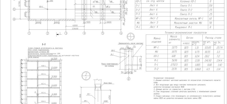 Пример ЖБК, здание с неполным каркасом