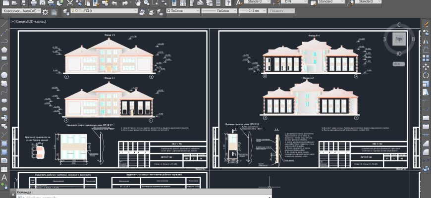 Рабочие чертежи стадии «Р» и «П» детского сада в Автокаде….