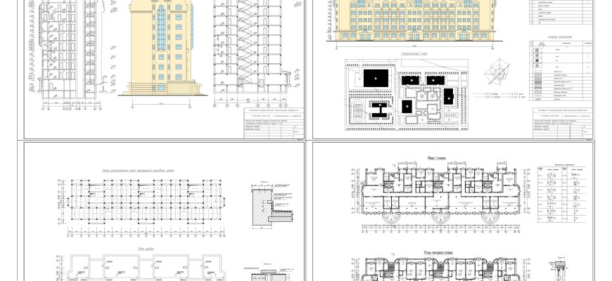 Раздел архитектура дипломного проекта на тему «9-ти этажный жилой дом с нежилыми помещениями на 1 этаже». Чертежи автокад, пз в ворде.